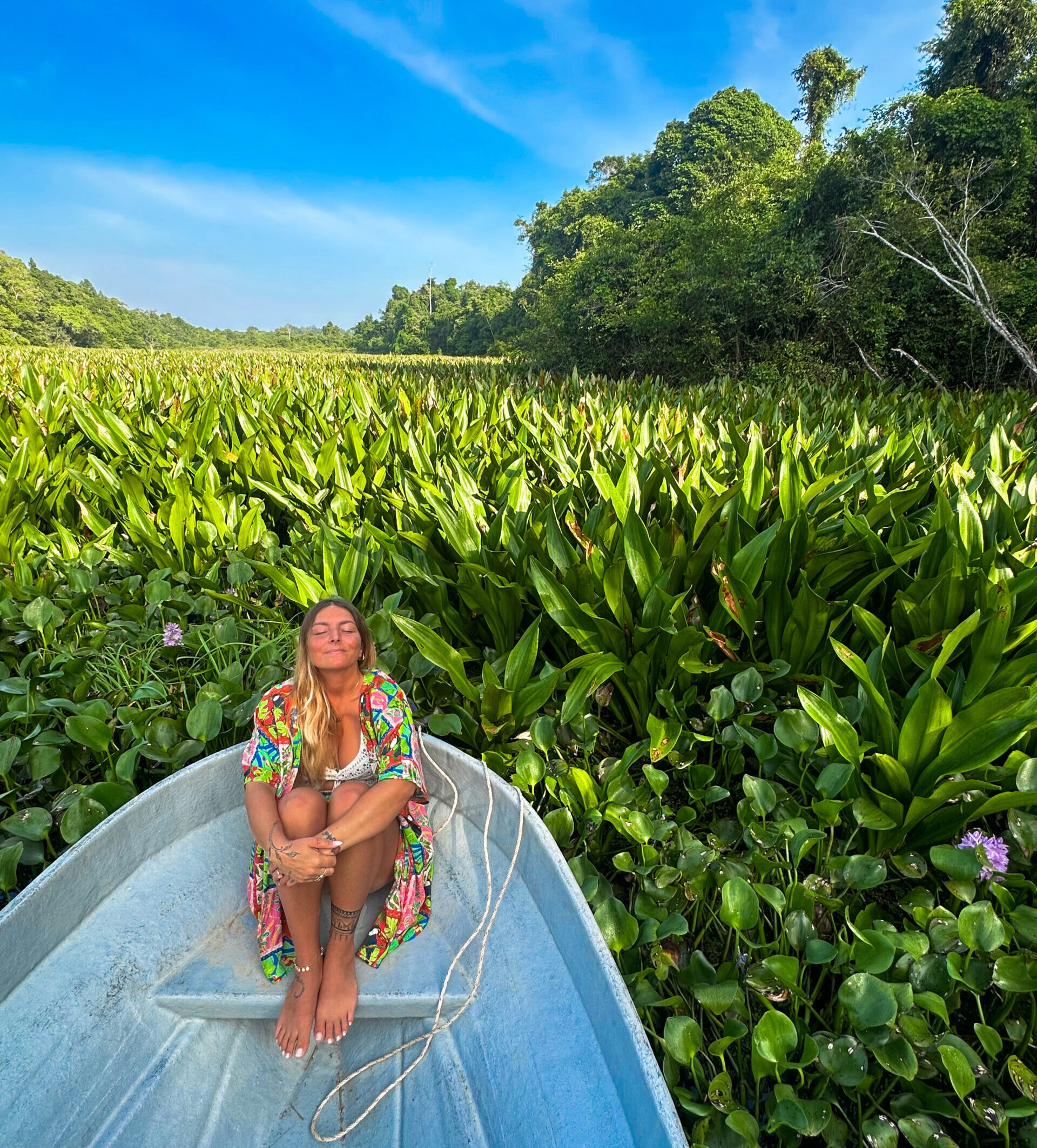 Poi, come sempre accade in viaggio, è arrivata la parte meno romantica. Nel tentativo geniale di far decollare il drone da una lancia, una vespa del Borneo ha deciso di punirmi pungendomi sulla chiappa: nel giro di poche ore la mia coscia era gonfia quanto un pallone. E se pensate che la mia amica sia stata più fortunata, vi sbagliate: una golden monkey ha scelto proprio lei per un incontro ravvicinato, regalandole una pipì sul braccio come souvenir. Benvenute nella giungla.