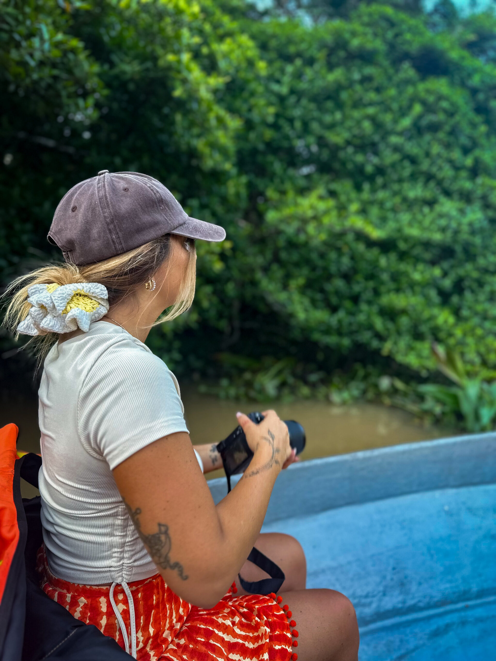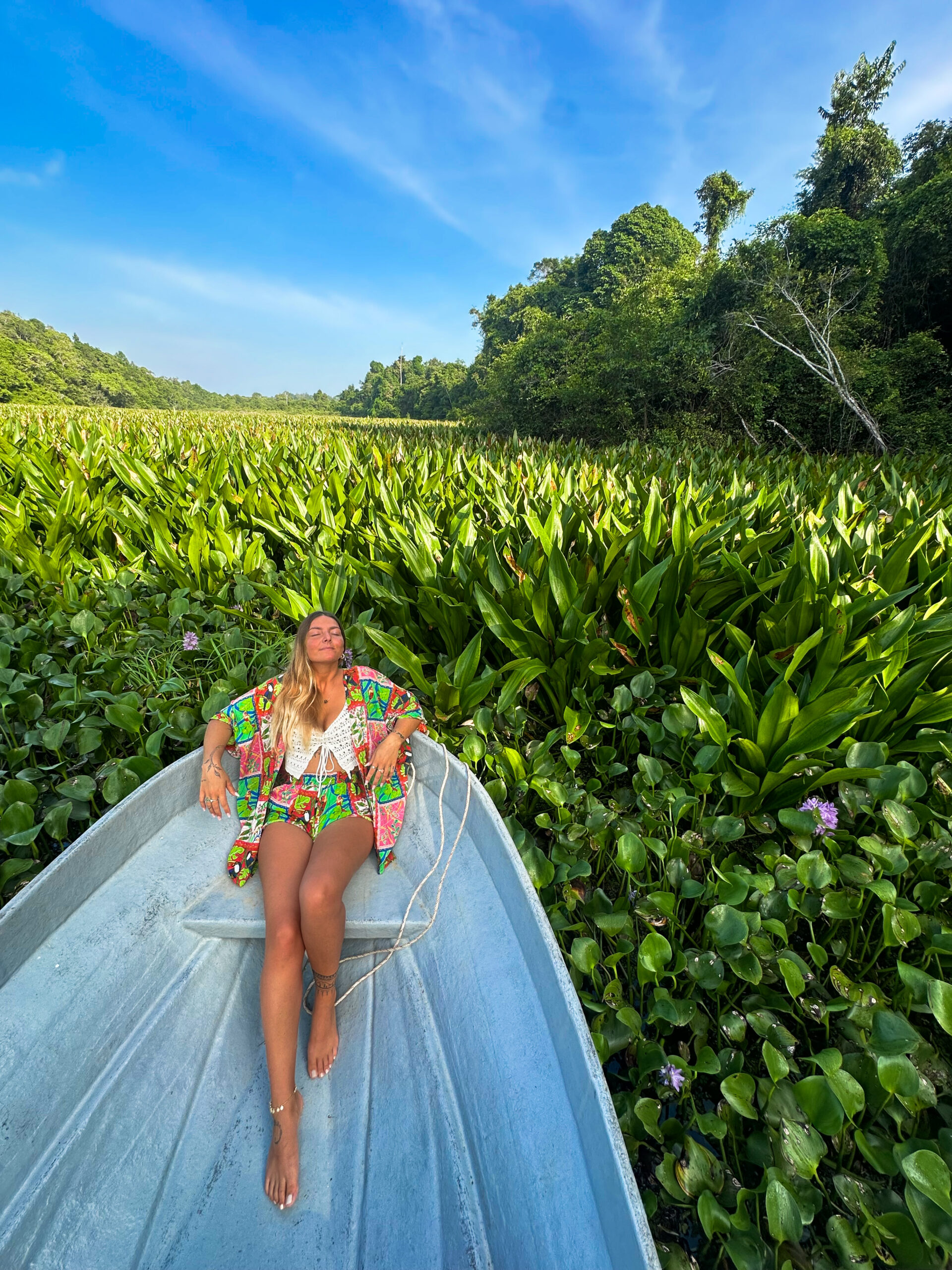 Poi, come sempre accade in viaggio, è arrivata la parte meno romantica. Nel tentativo geniale di far decollare il drone da una lancia, una vespa del Borneo ha deciso di punirmi pungendomi sulla chiappa: nel giro di poche ore la mia coscia era gonfia quanto un pallone. E se pensate che la mia amica sia stata più fortunata, vi sbagliate: una golden monkey ha scelto proprio lei per un incontro ravvicinato, regalandole una pipì sul braccio come souvenir. Benvenute nella giungla.