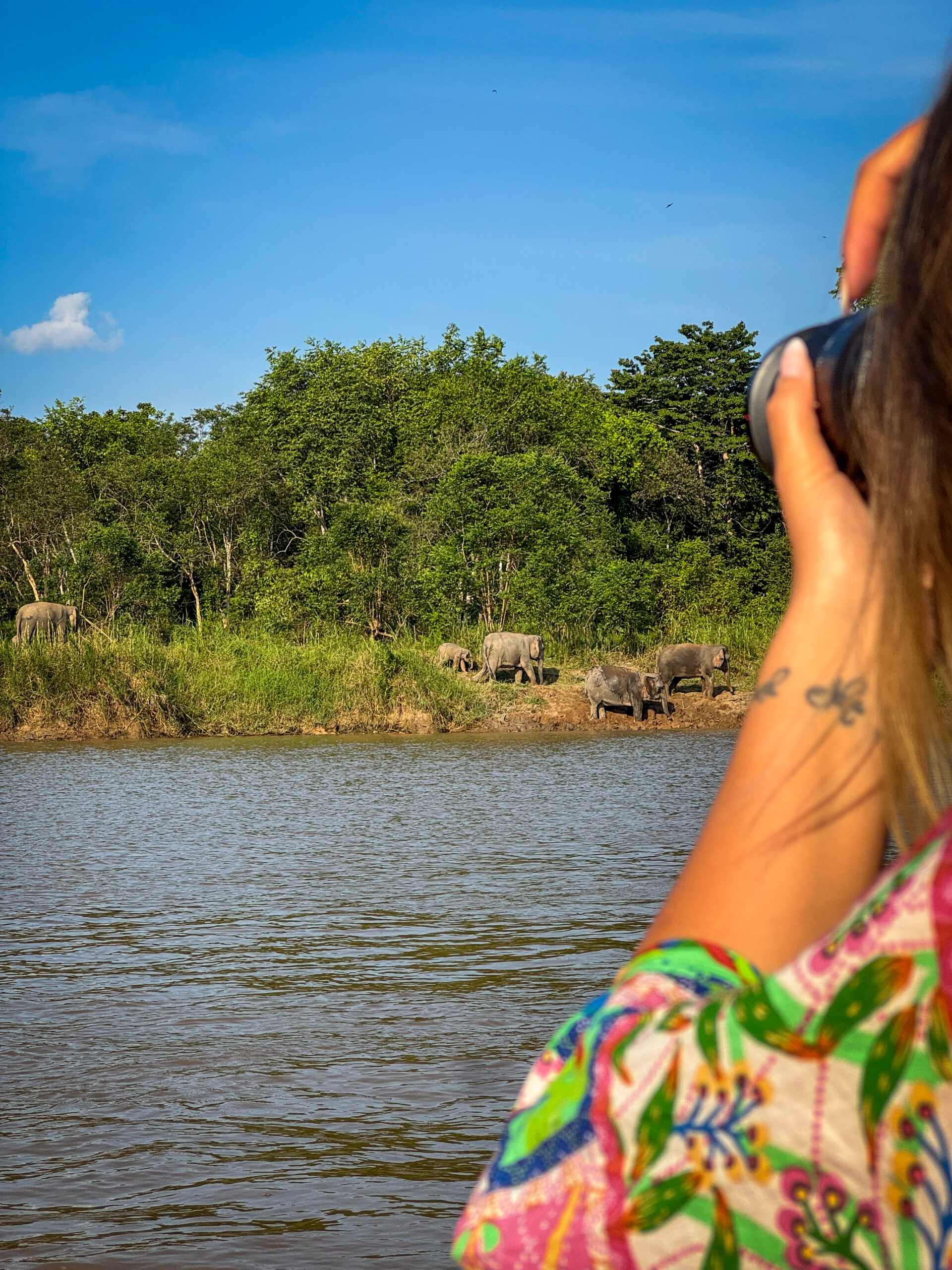 I giorni nella rainforest sono passati spostandoci ogni volta su una barchetta di legno minuscola, cinque persone al massimo, risalendo il fiume in cerca di animali. Per chilometri e chilometri non c’era nessuno: solo noi e i villaggi sul fiume, dove abbiamo avuto la sensazione di entrare a far parte di qualcosa di incontaminato. Lì impari a fare attenzione a ogni gesto, a ogni rumore, a non turbare quell’equilibrio fragile. L’aria era pura, l’odore totalmente nuovo, mai sentito prima. I miei occhi vedevano soltanto verde, e il mio cuore si riempiva di tutto l’amore che la natura può creare.