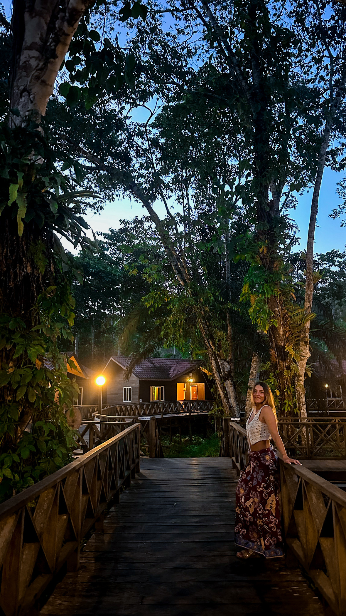 In quei giorni abbiamo incontrato creature che esistono solo qui: le scimmie nasiche, gli oranghi, ma anche gli elefantini pigmei del Borneo e l’orso malese, con il segno del sole sul petto. Di notte, tutto cambiava. Nessuna luce, solo milioni di lucciole che illuminavano gli alberi, coccodrilli che affioravano silenziosi dall’acqua e insetti dai colori impossibili che si mostravano al buio. Era come essere finiti dentro un documentario del National Geographic. Mi sentivo grata, viva, incredula.